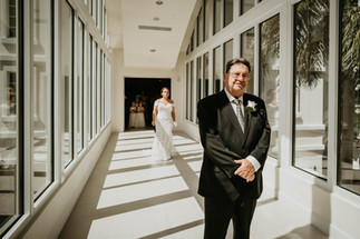 Angelina didn't want to do a first look with her groom to be, but she wanted one with her dad and brothers. We did the first look for the wedding at the Wyndham Grand Jupiter in their beautiful walkway frull of light.